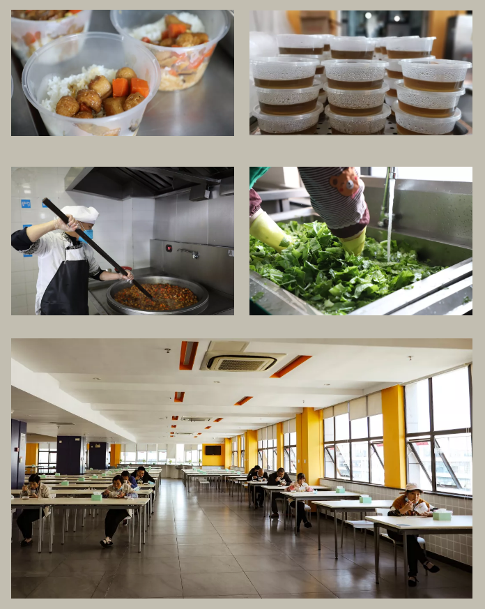 细心的工作人员提前制作大批办公遮挡板,,为员工安心办公设立一道安全屏障,,,,隔离病毒却不能隔离同事情谊,,,,干净整洁的办公室比往日安静许多,,,响起的是敲击键盘的哒哒声,,,少了往日亲切交谈、、、你来我往的沟通——疫情背景下,,,话虽少但心却更近了。。 复工第三关:用餐防护 食堂工作人员自己全面做好防控措施的同时,,,严把原材料关,,,保证饭菜制作全过程安全、、、、卫生。。。午餐采取各楼层配餐方式,,,谢绝外部人员进入用餐、、杜绝外卖送餐。。。在餐厅用餐者需二次量体温,,,,隔位入座用餐。。。。 防控在前,,,安全复产