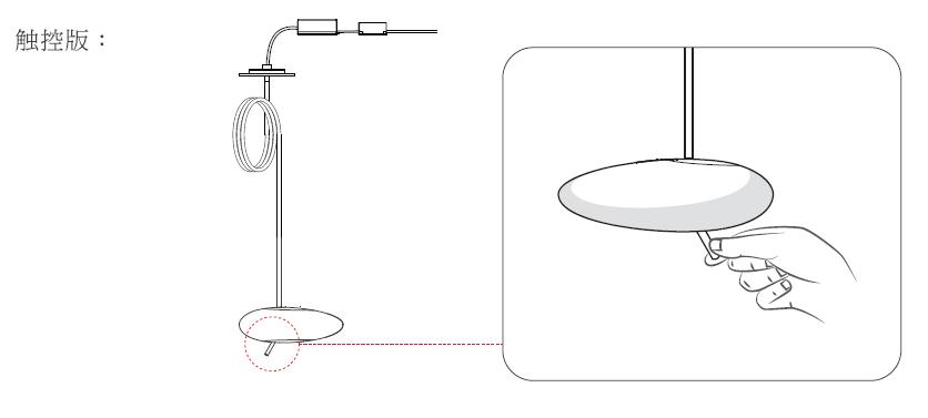 Q:灯具接电后,,,长按铜金属杆,,,灯逐级调节到最亮或最暗。。。。