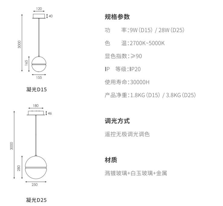 凝光吊灯用双层弯曲的造型作为主要造型特征形成在空间里自由灵动的造型,,,,以一定的角度倾斜,,形成丰富的画面,,半圆形等分的灯罩采用白玉料与透明溅镀两种工艺,,,,下路利用直下式光学提供充足光线,,上路则采用测发光方式,,,,发光面透过溅镀的玻璃曲面折射出一个光的倒影。。两种方式组合在一起,,使其在简单的几何形态中有自己的表达。。。。